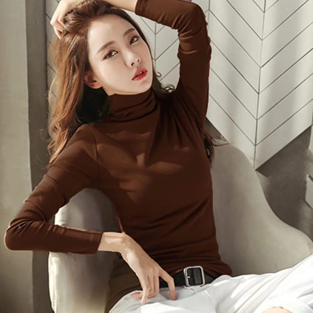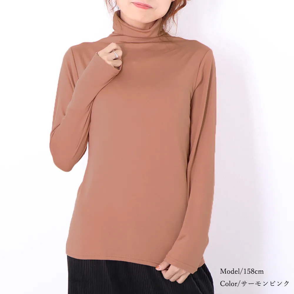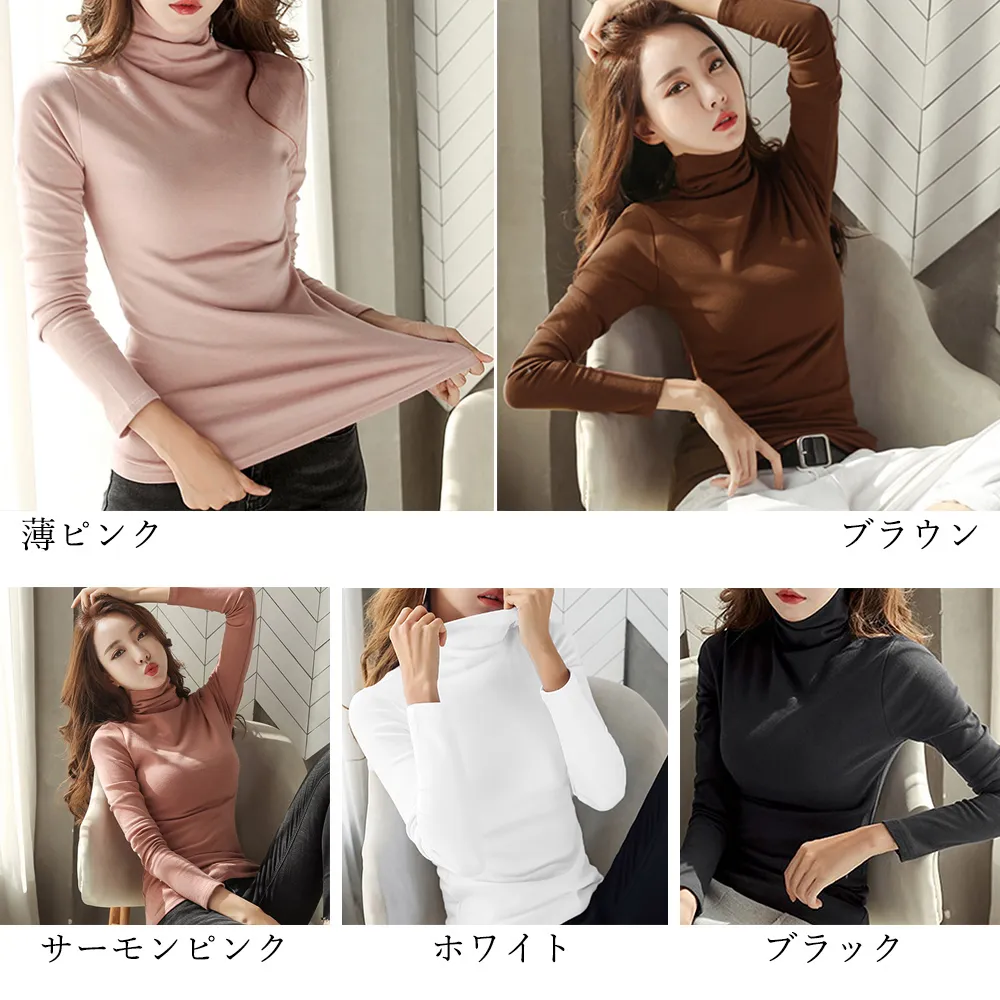 【秋冬春対応】裏起毛タートルネックトップス レディース長袖タイトフィット 伸縮性素材で着回し自在!ブラック/ホワイト/ブラウン/薄ピンク/サーモンピンク