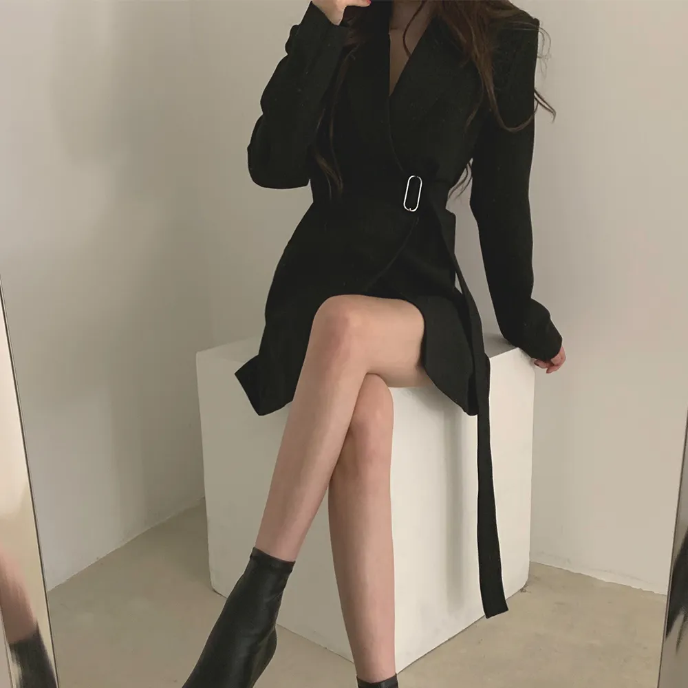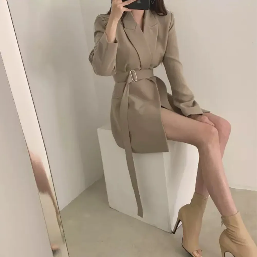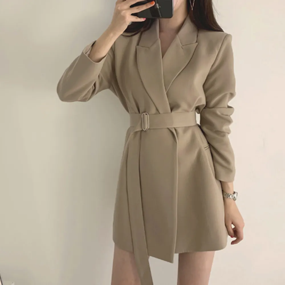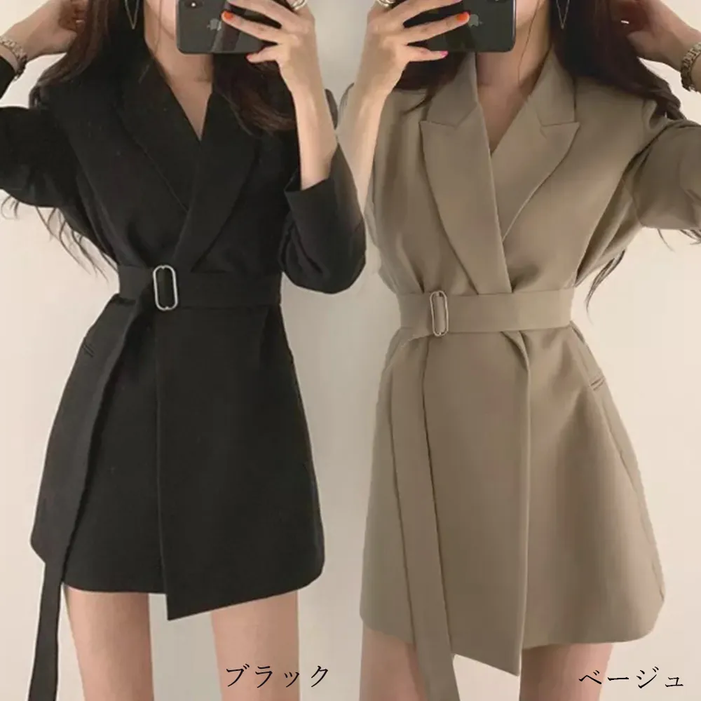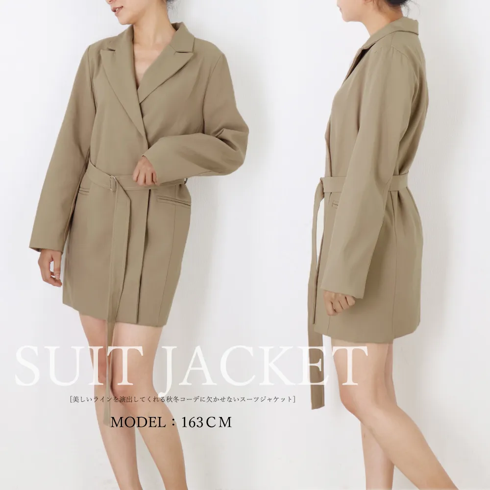 ベルト付きレディーススーツジャケット | 秋冬コーデに最適な2wayデザイン | 細見えシルエット