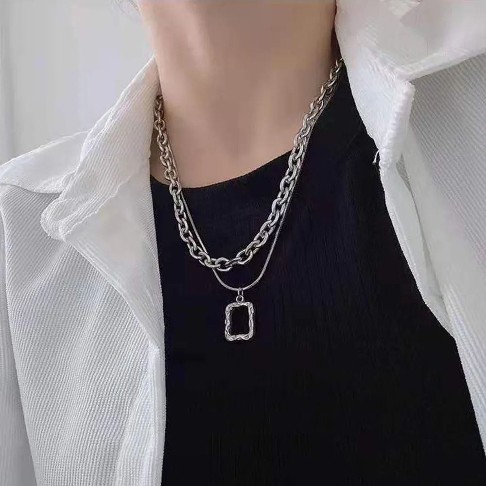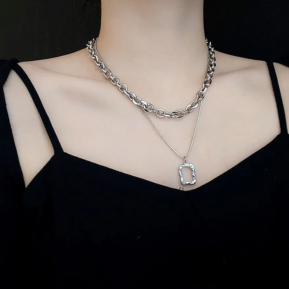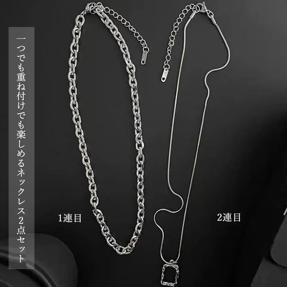 デザイン違いのチェーンが2点セットになったチョーカーネックレス
