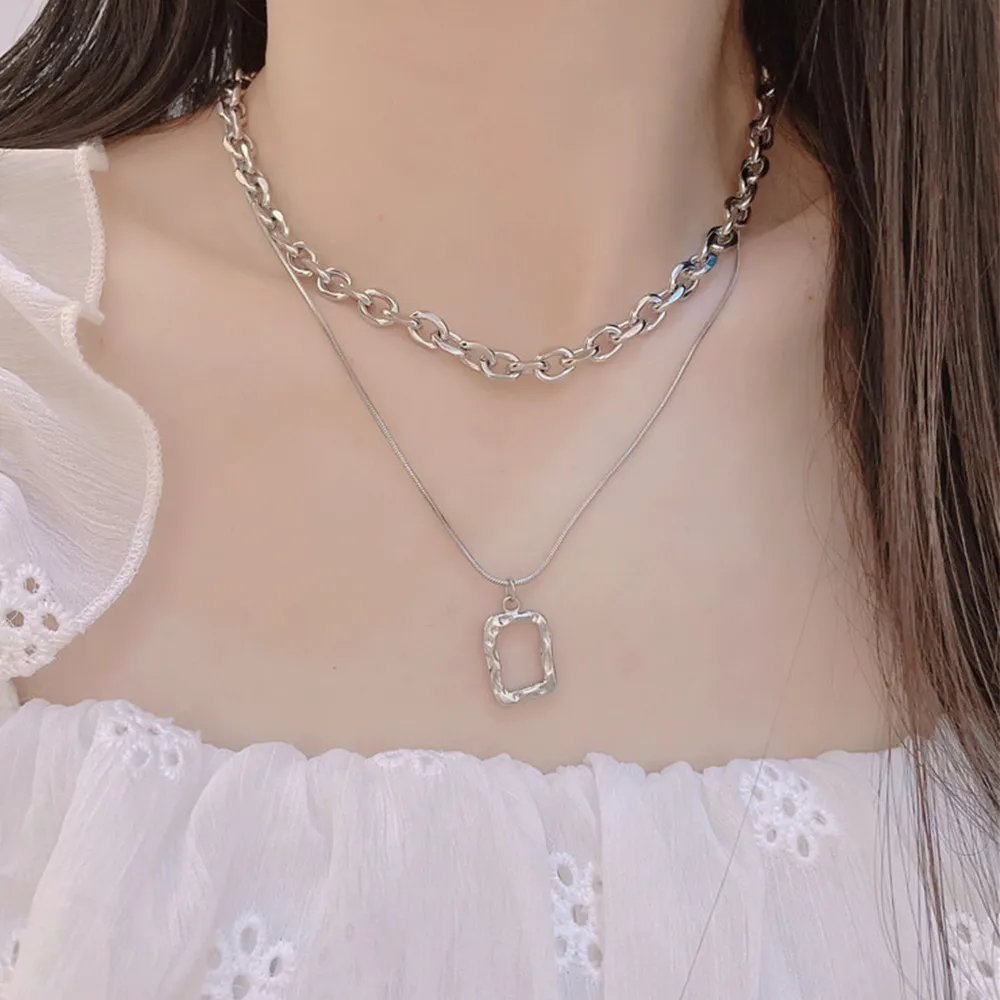 シンプルで大人可愛い2連チョーカーネックレス シルバーチェーン アクセサリー レディース プレゼント ギフト | 首飾り レイヤード可能 誕生日 おしゃれ
