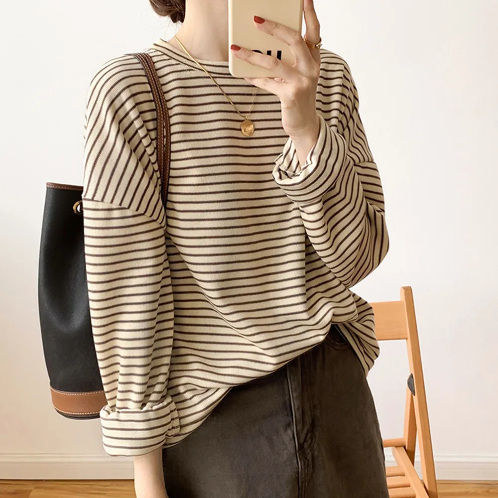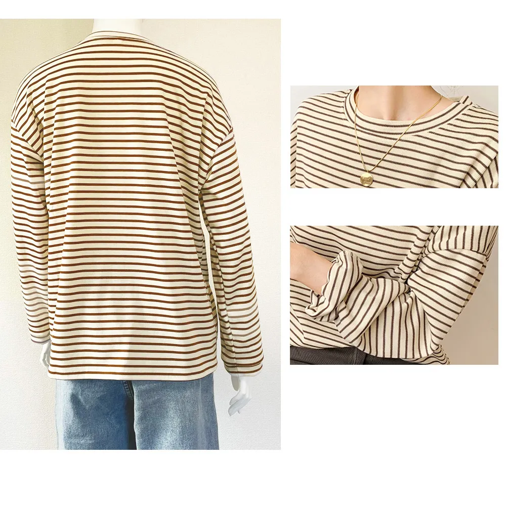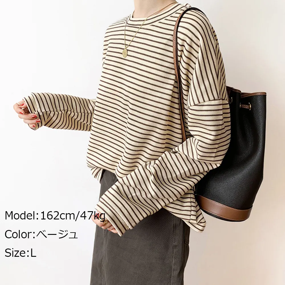 レディース長袖Tシャツ 薄手クルーネック体型カバープルオーバー 春秋通学コーデ大人女子向け