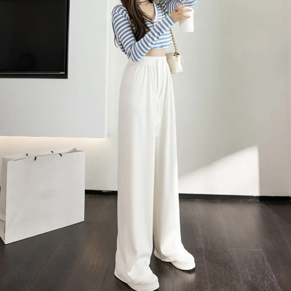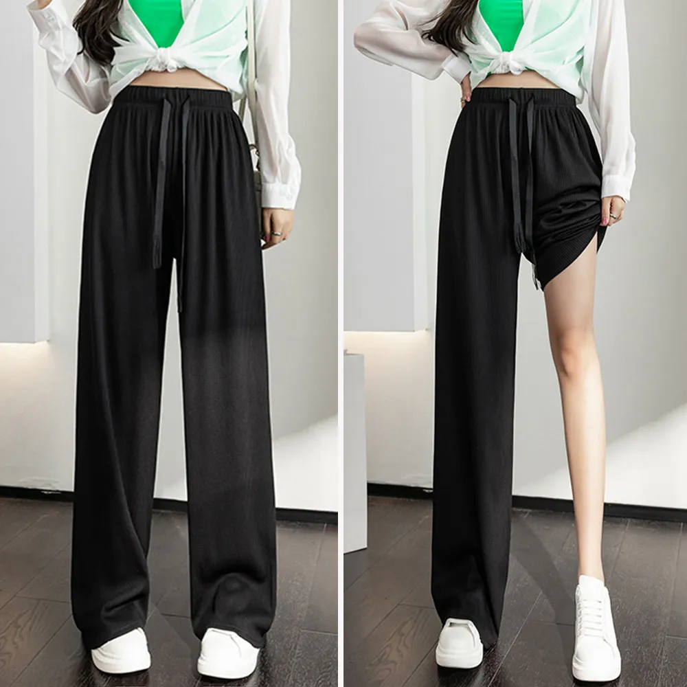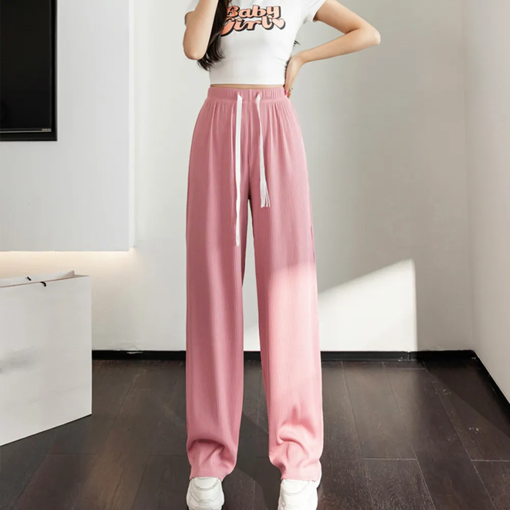 レディース脚長効果 ハイウエストワイドパンツ ストレートデザイン ウエストゴムで楽ちん スポーツMIXコーデ対応