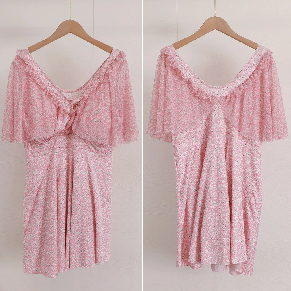 小花柄フレアスリーブワンピース水着|体型カバーで40代50代も着やせ効果