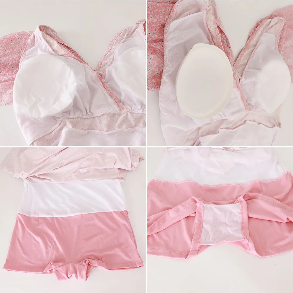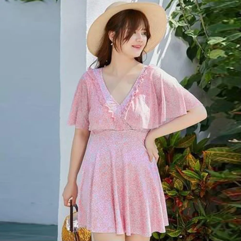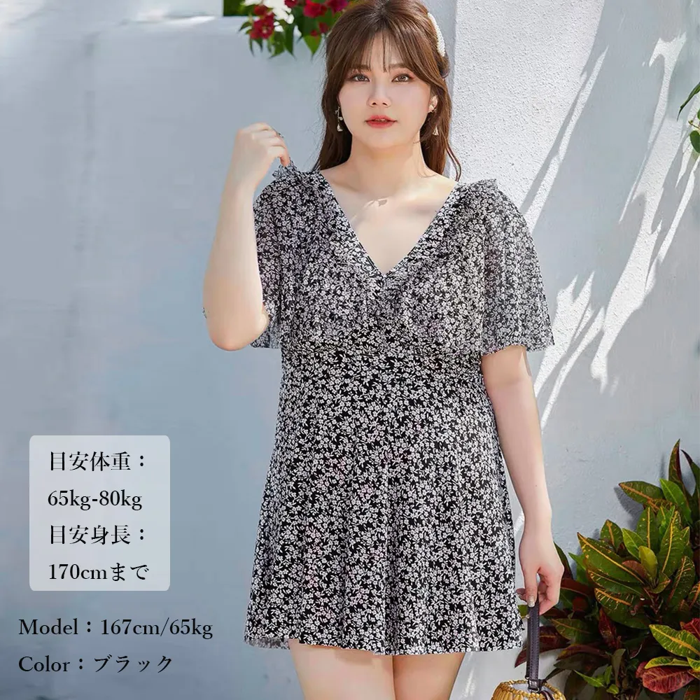 小花柄&フリルが可愛らしく、胸元を強調しながら体型をカバーするぽっちゃりワンピース水着