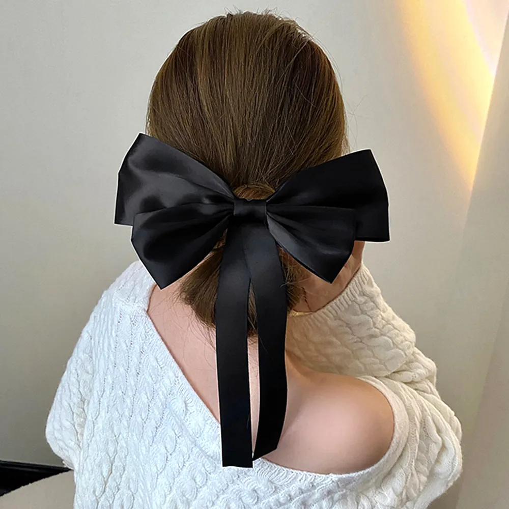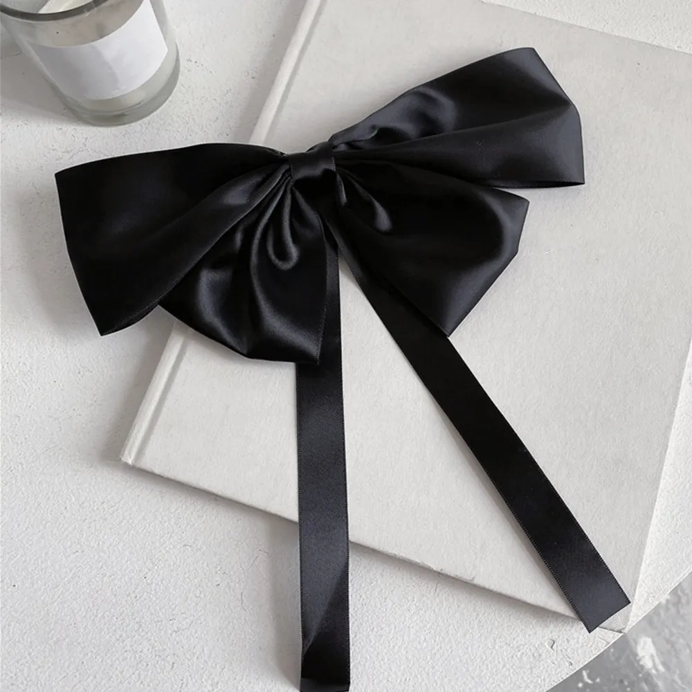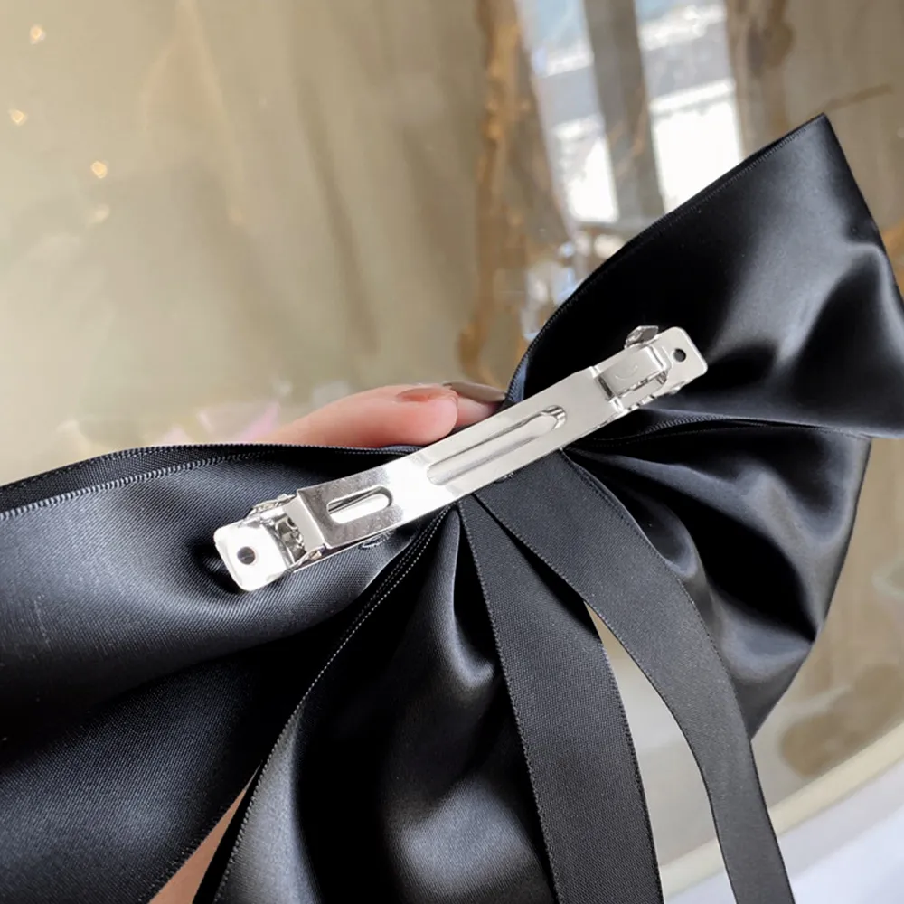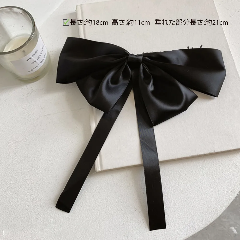 サテンビッグリボンバレッタ 韓国風ヘアアクセ 大きめレディース蝶々結髪飾り 大人可愛いプチプラ
