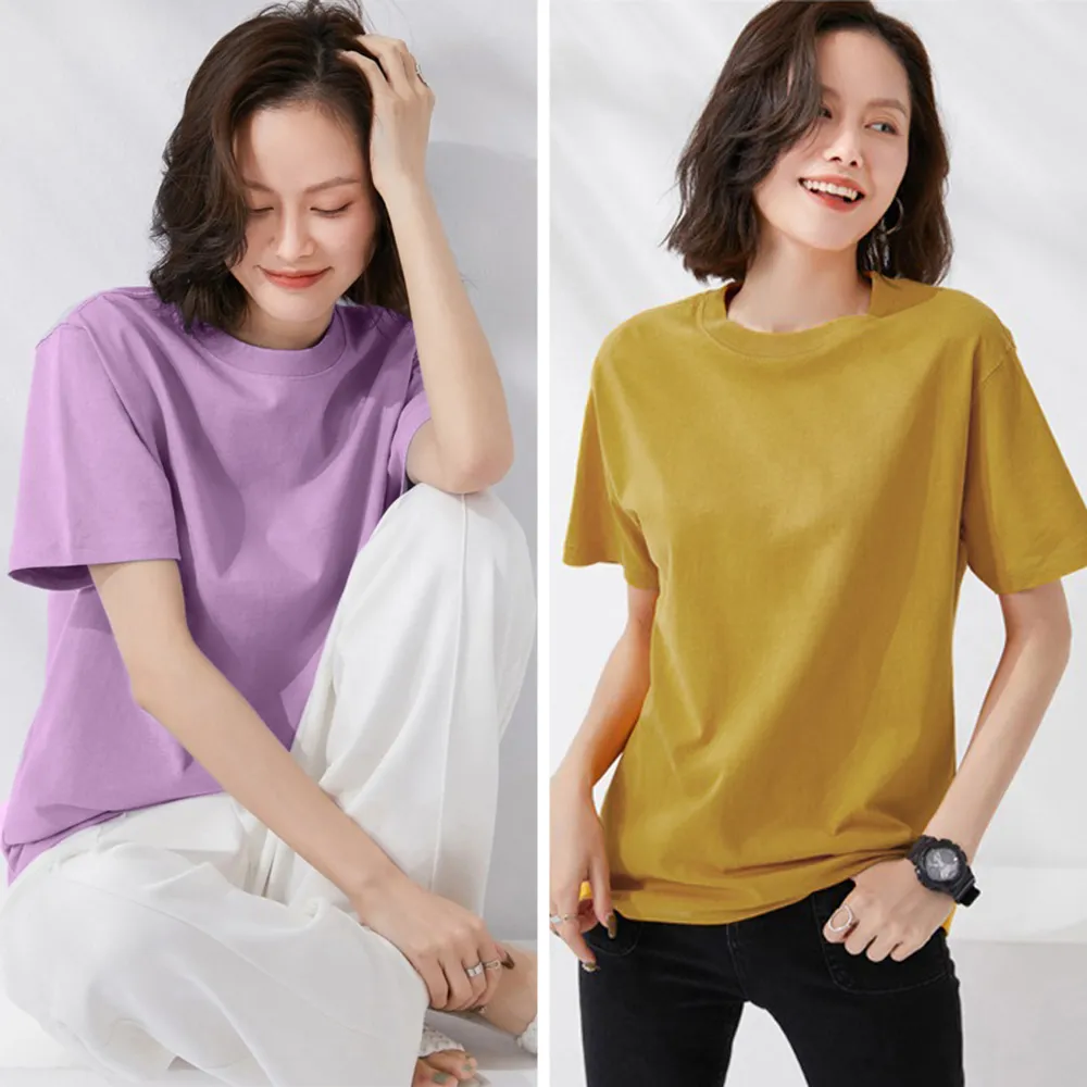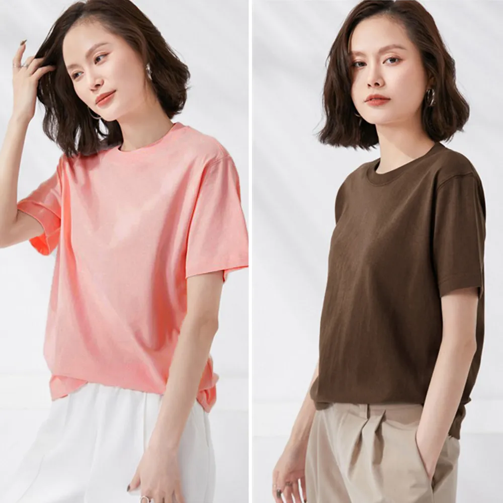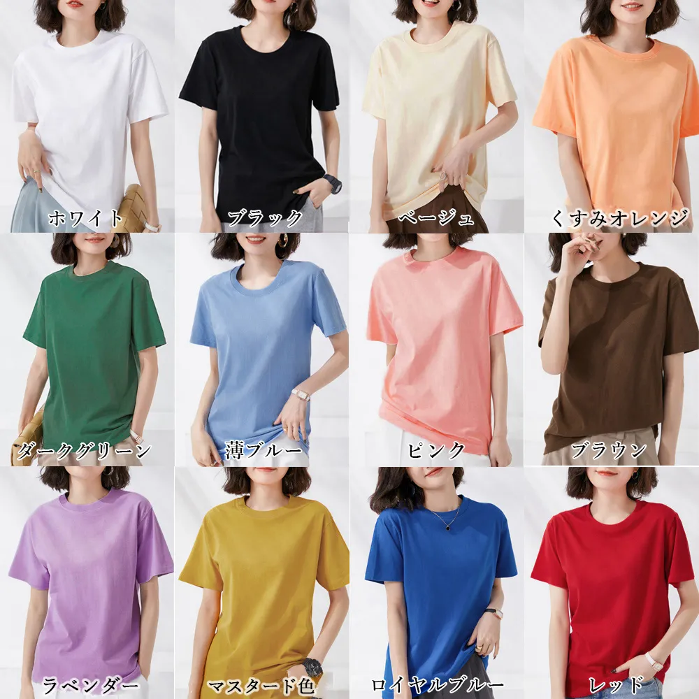 無地ロングTシャツ レディース半袖 ゆったり体型カバー 棉混素材で着心地◎ 12色展開 夏服シンプルカットソー