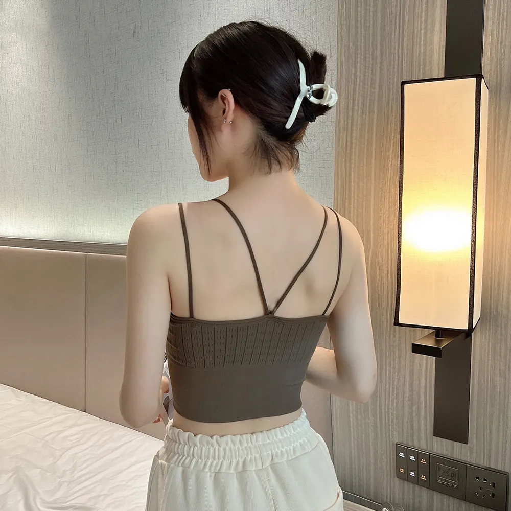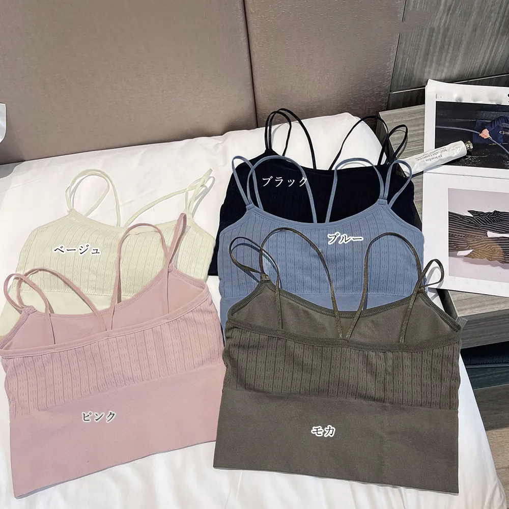 韓国風カップ付きインナーキャミソール 美背美胸ヨガブラ ノンワイヤーで快適なストレッチキャミ