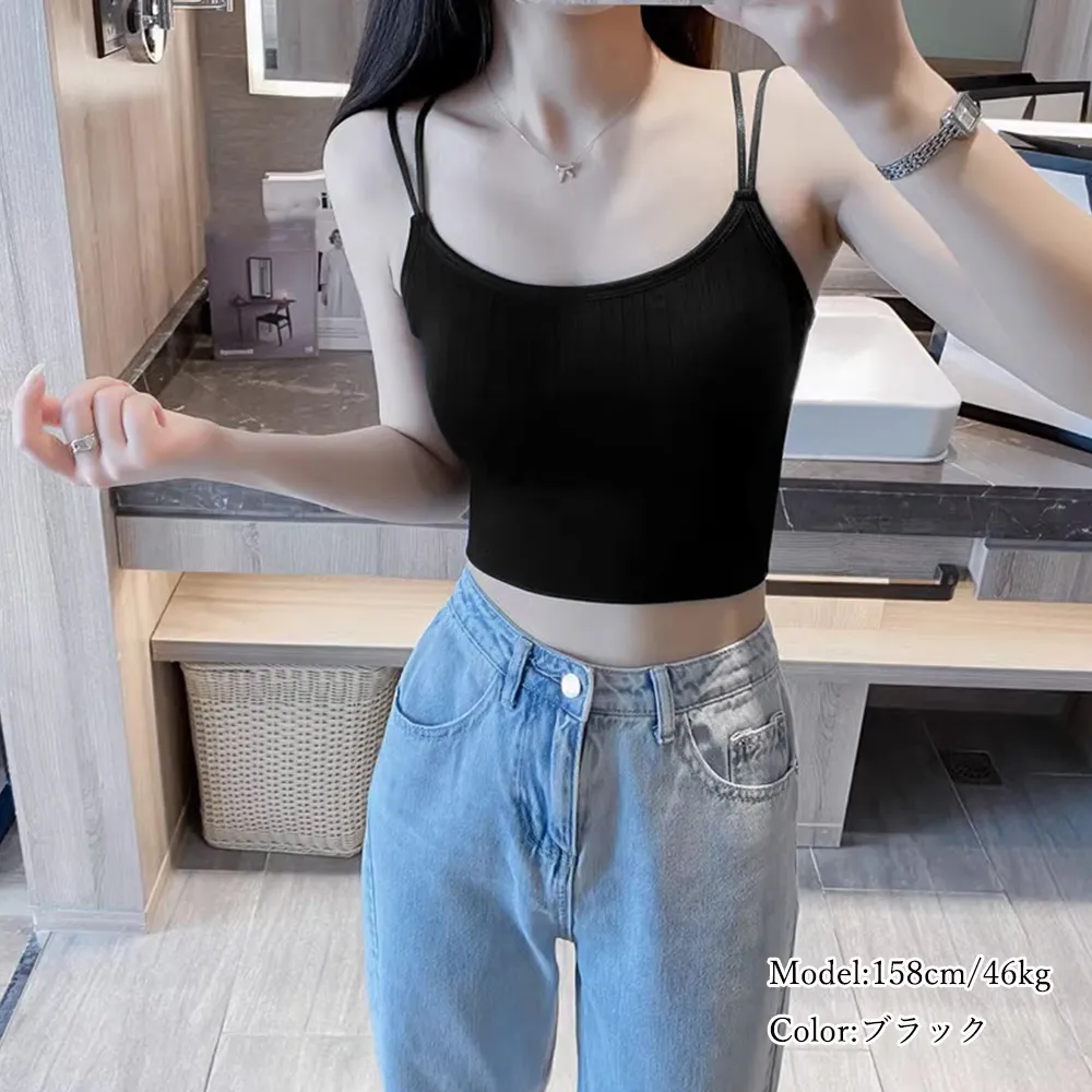 無地カジュアルブラ 重ね着キャミソール へそ出しブラトップ