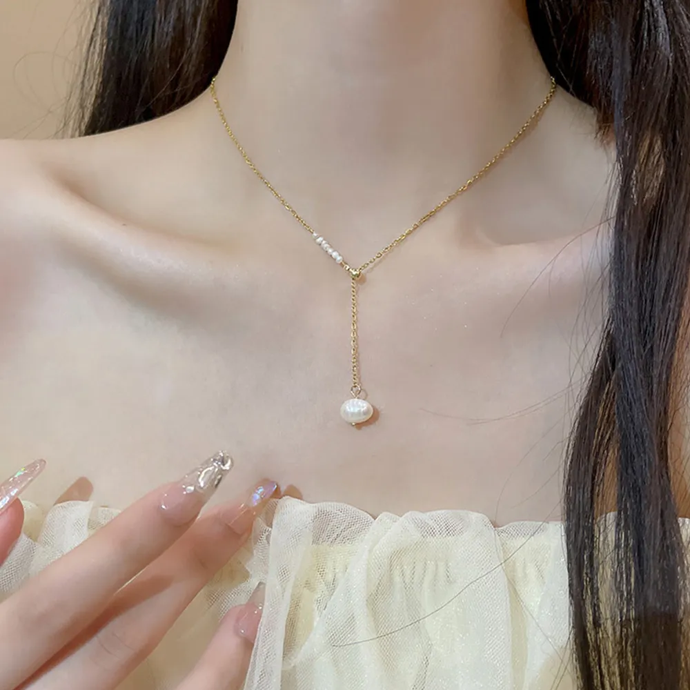 上品フェイクパールネックレス 韓国風華奢ペンダント | 大人可愛いアクセサリー パーティ結婚式プレゼント