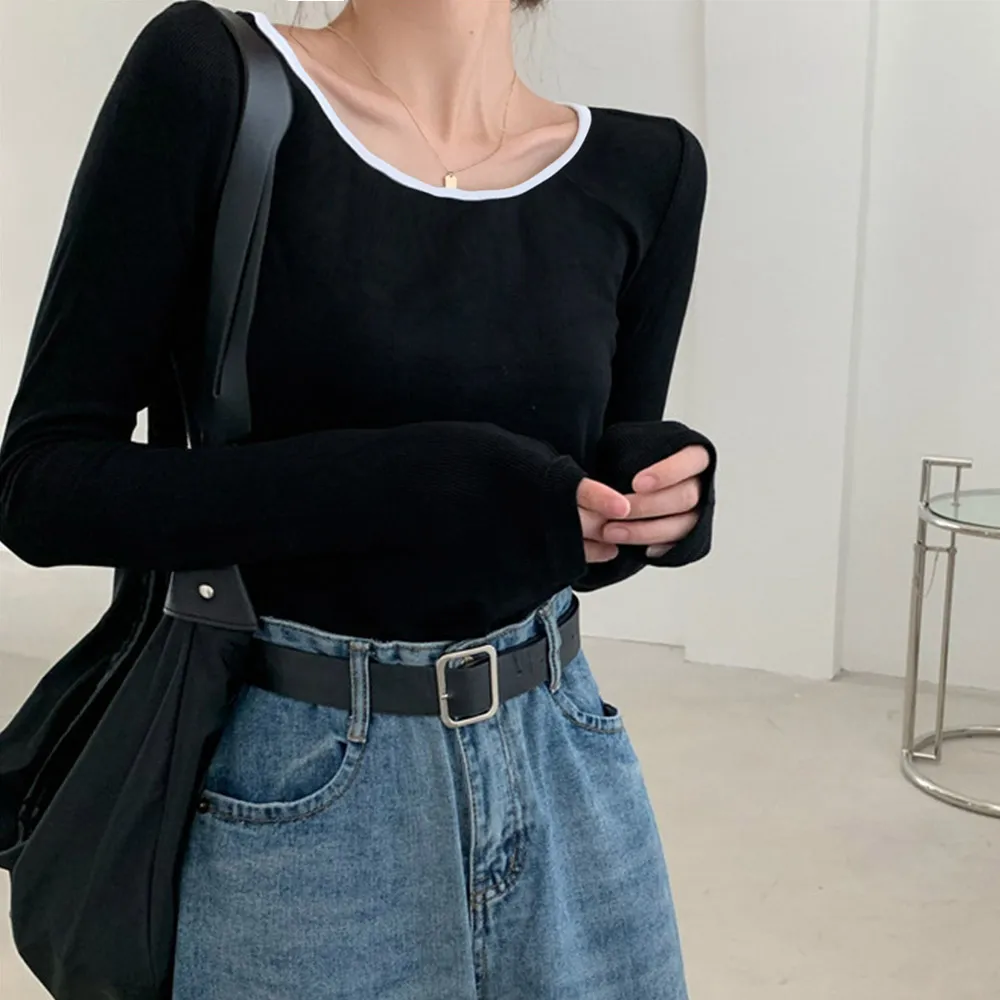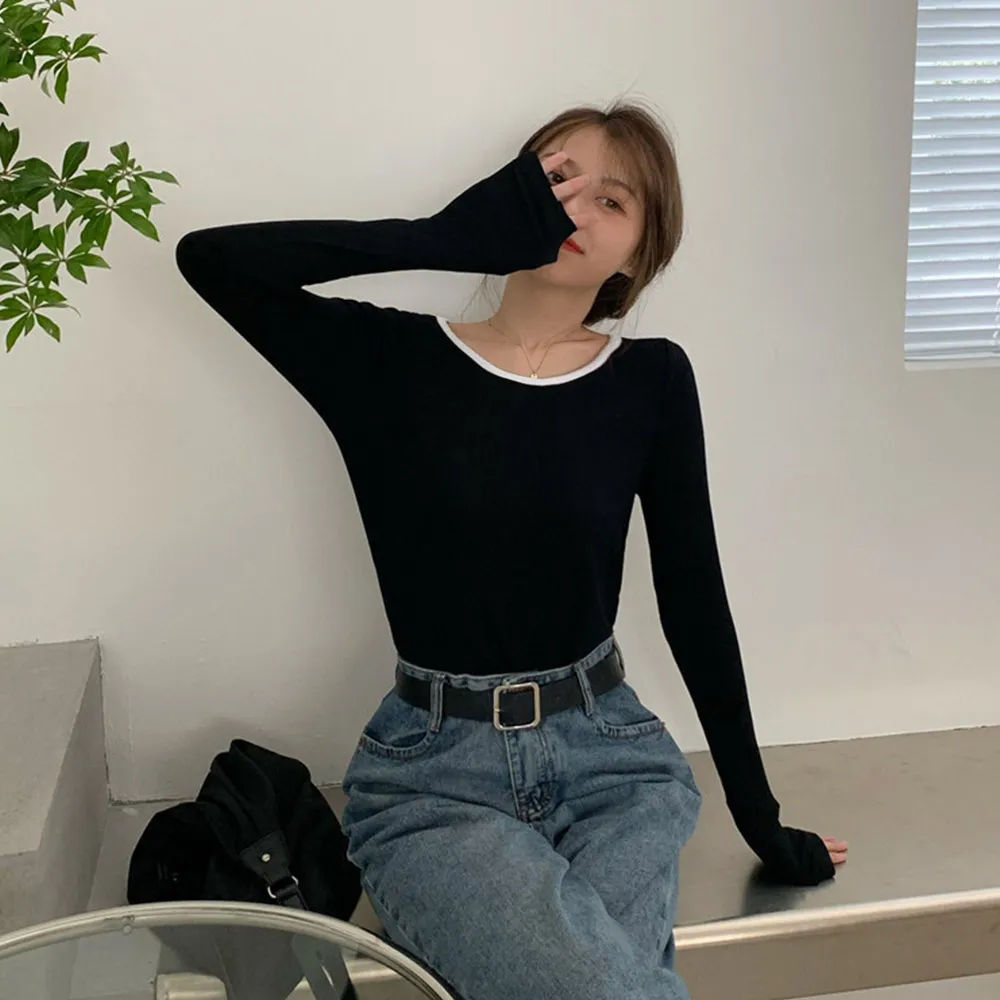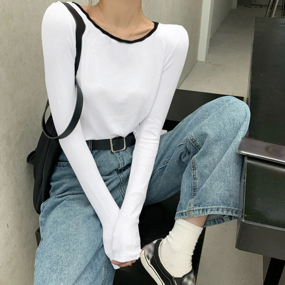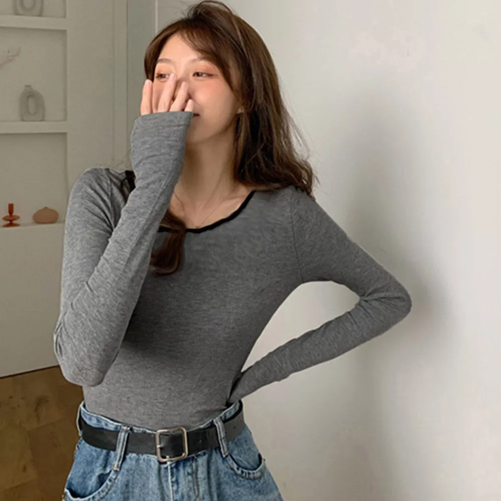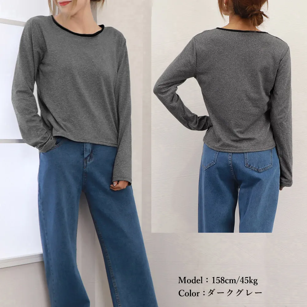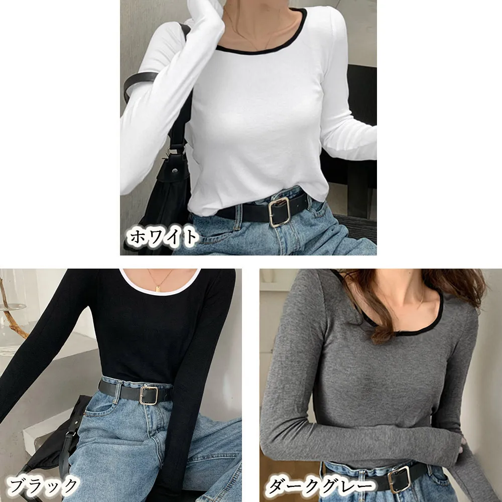 長袖Tシャツ レディース秋服 カットソー 韓国風クルーネック 着やせ効果 ポリエステル+綿素材 春秋シーズン対応