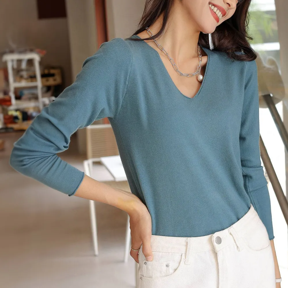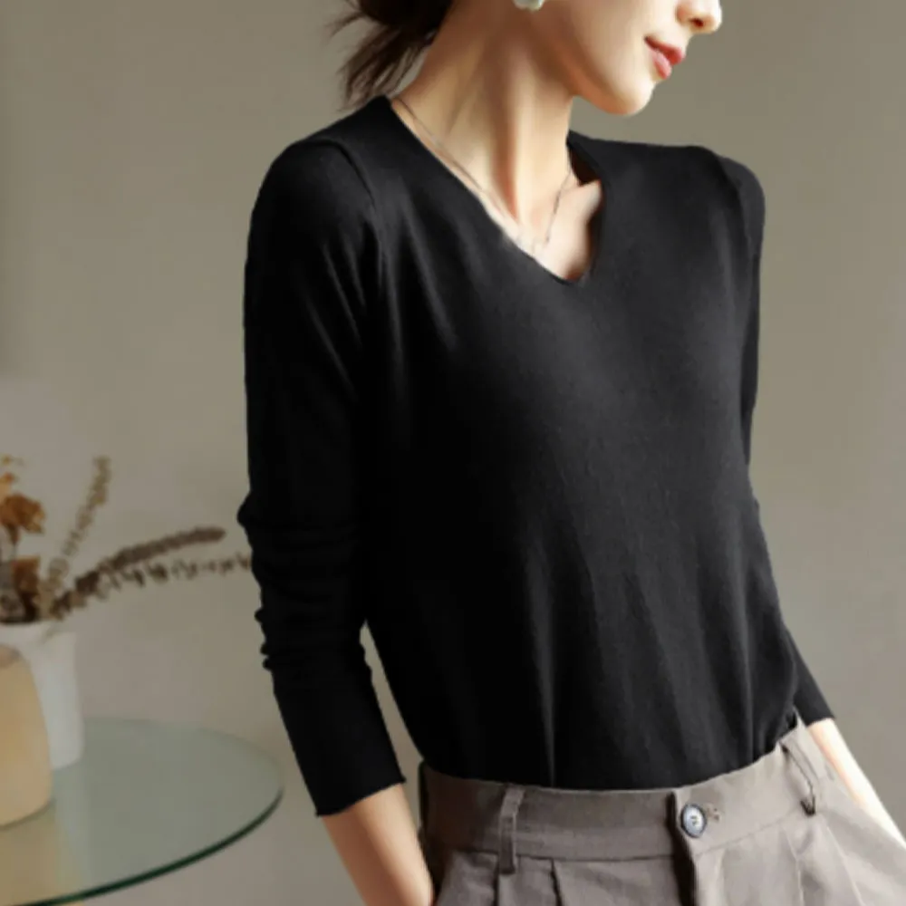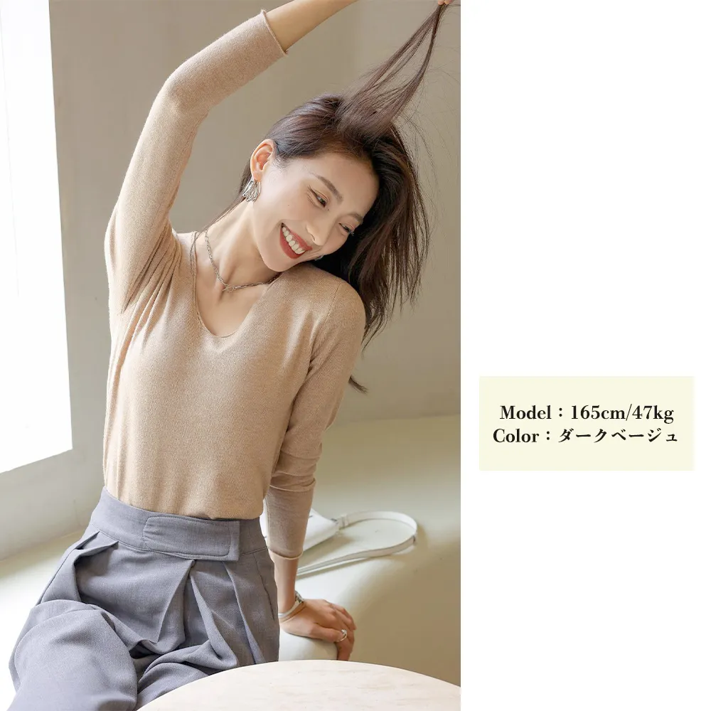 無地ニットトップス Vネック レディース|柔らかい伸縮性 春秋通勤に最適なオフィスカジュアル
