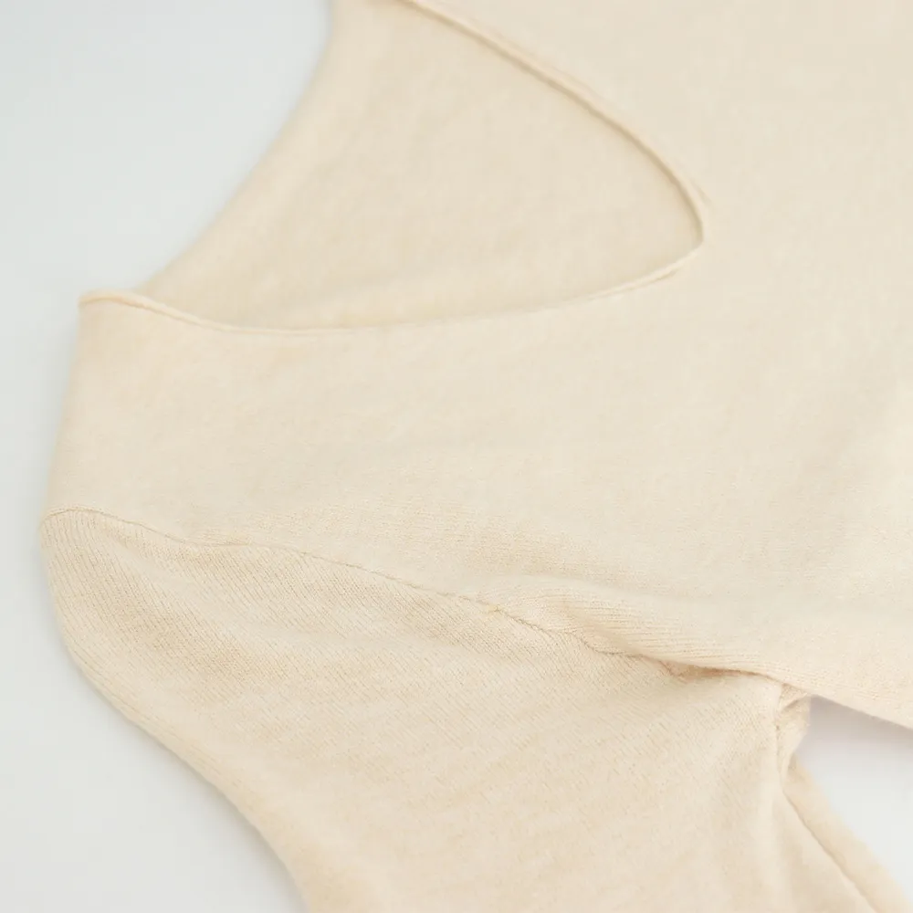 程よいVネックの開きで小顔見せ