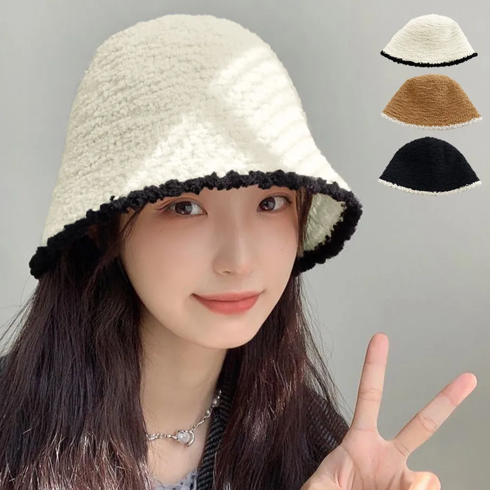 韓国風つば広ニットバケットハット レディース秋冬防寒おすすめ 折りたたみ可能 7色選べるあったか帽子