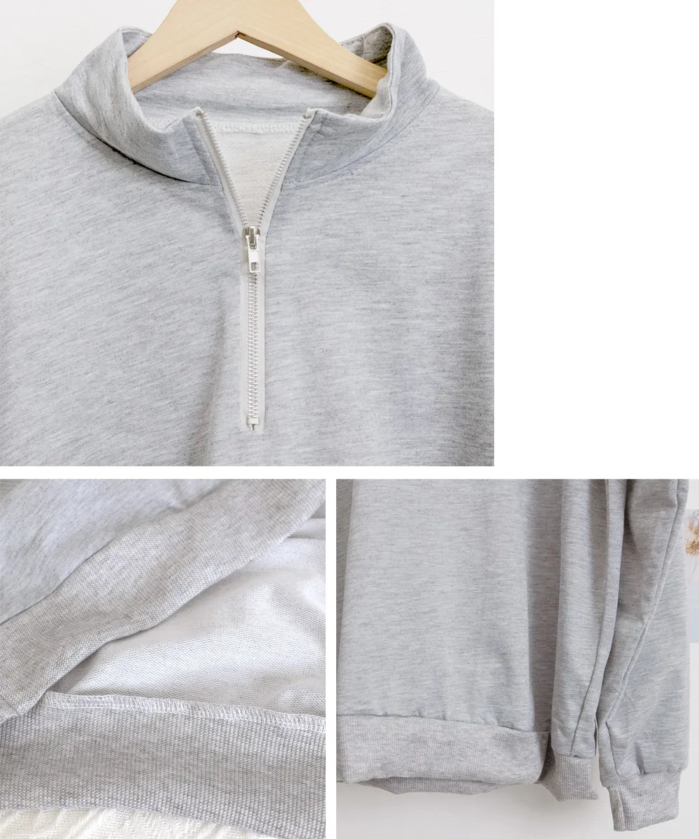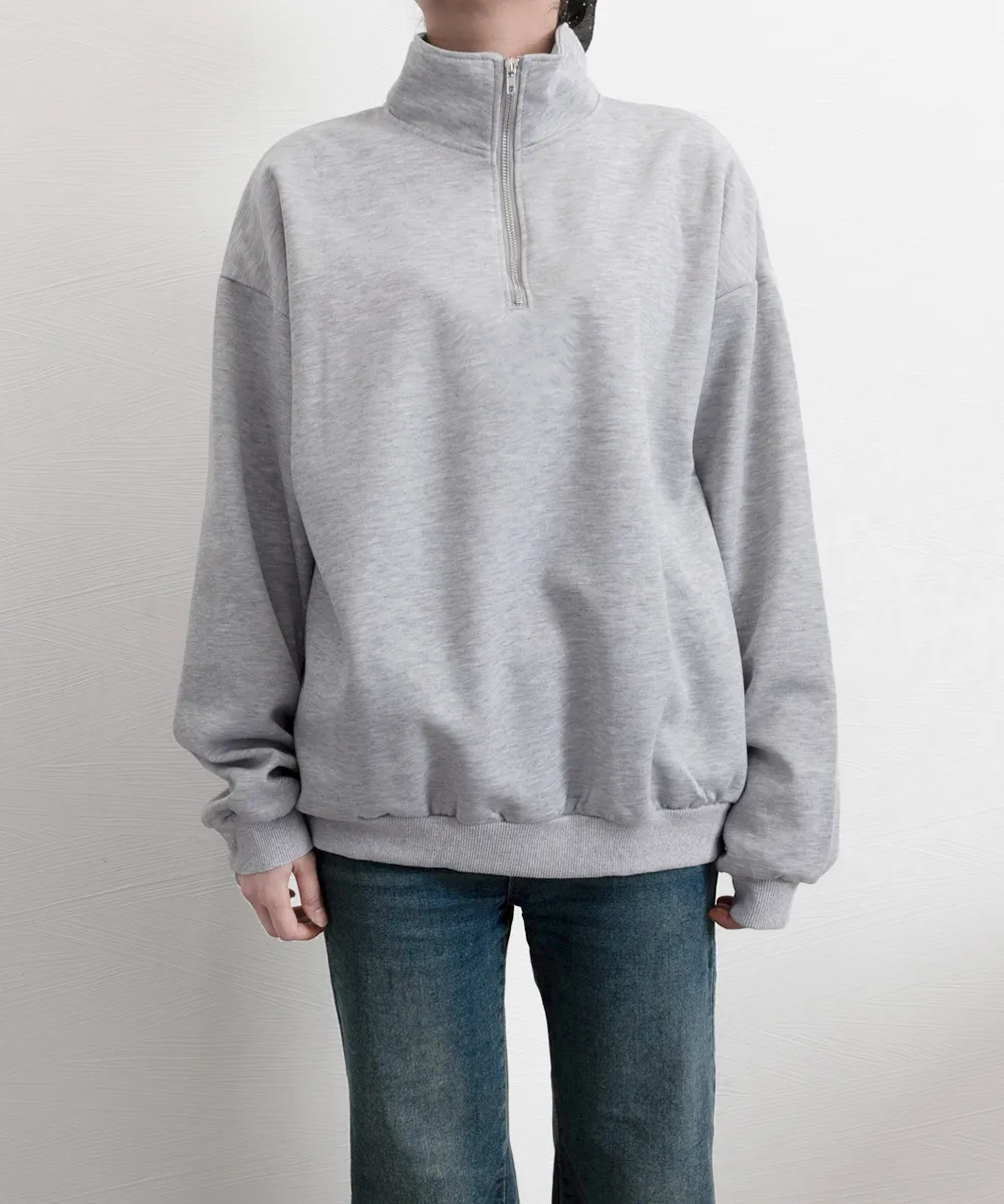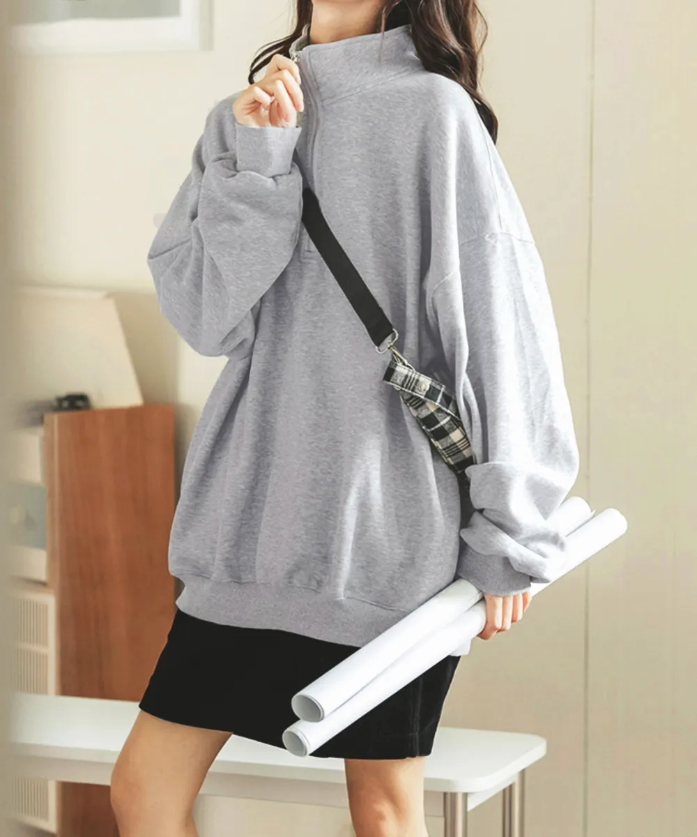 ハーフジップスウェットシャツ 春秋薄手 ハイネック長袖トレーナー ゆったり体型カバーアイテム 韓国風カジュアル ルームウェア・通学にも