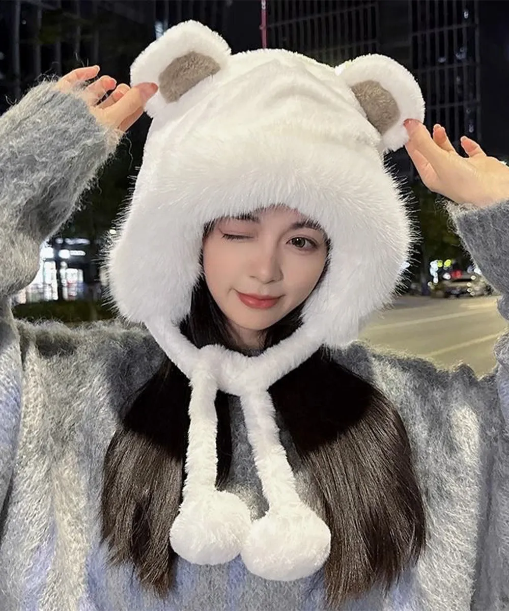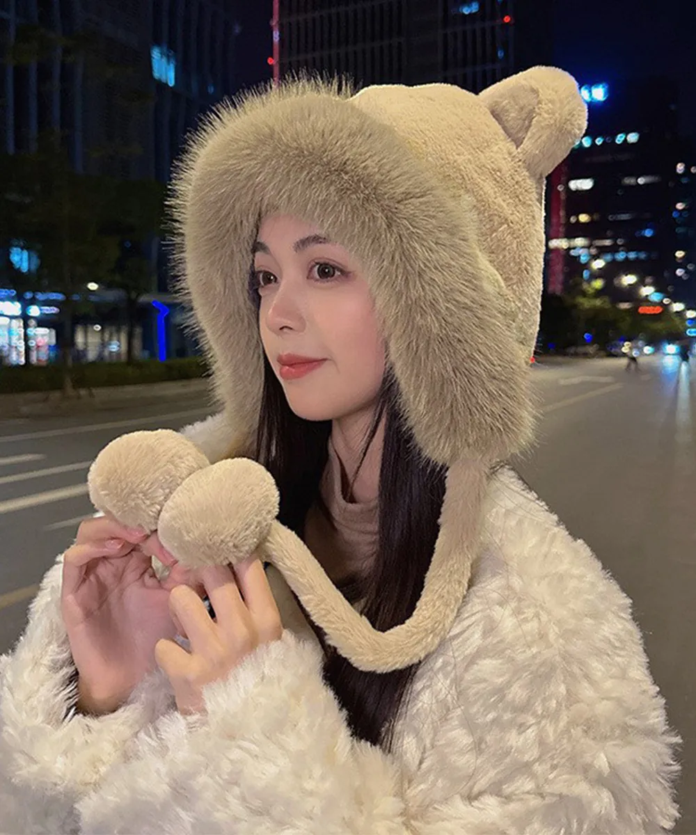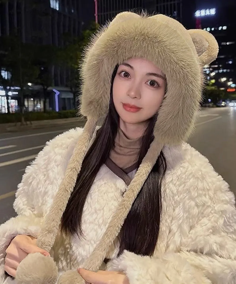 可愛らしいクマ耳がポイントの、柔らかく暖かなレディース帽子