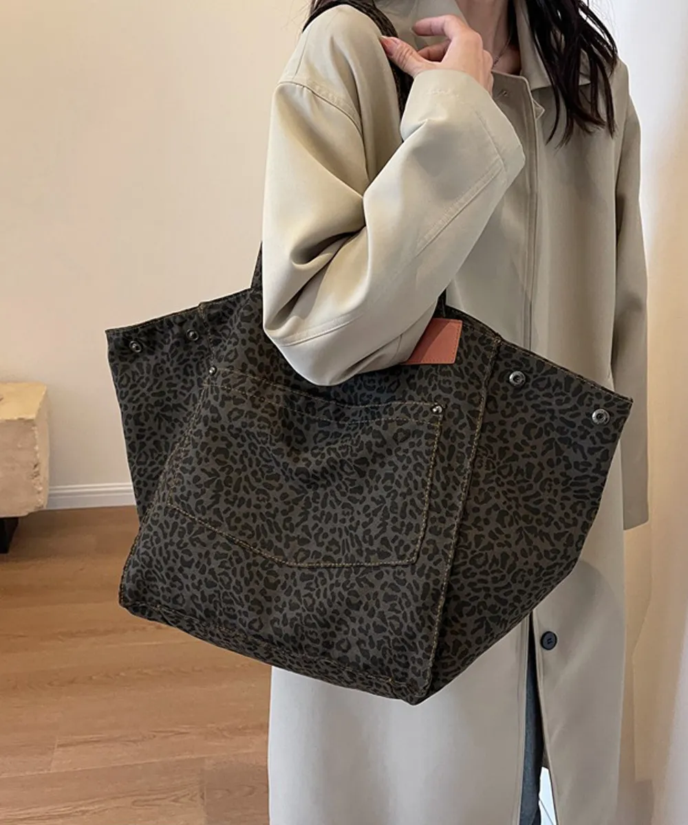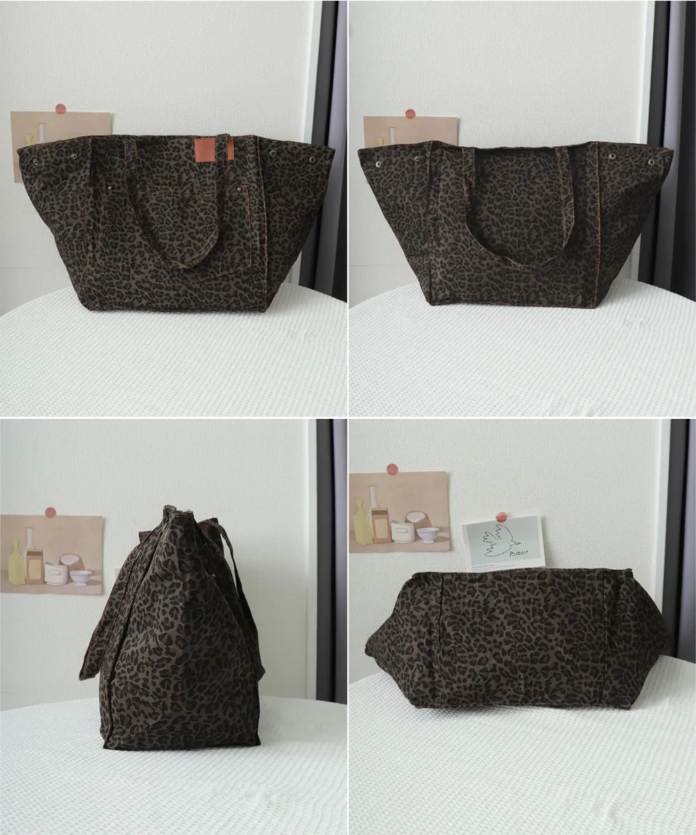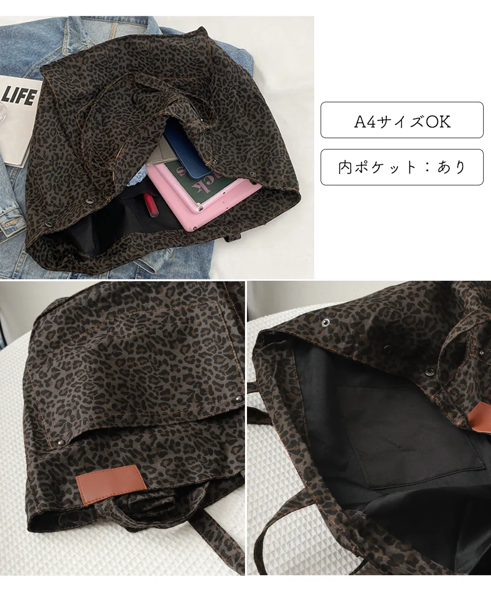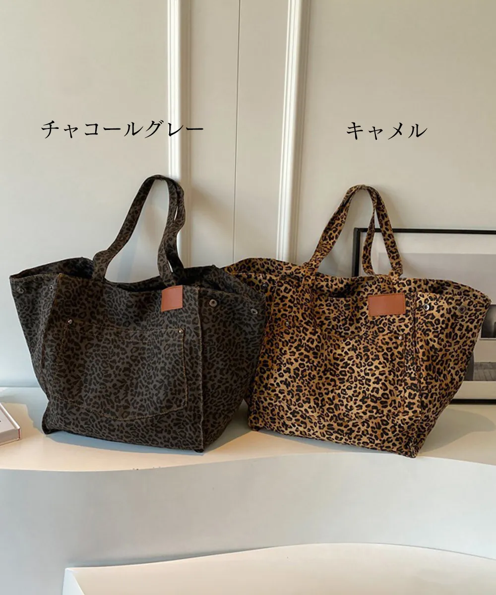 ヒョウ柄大容量トートバッグ A4対応&ipadminiも入る軽い素材 韓国風デザイン