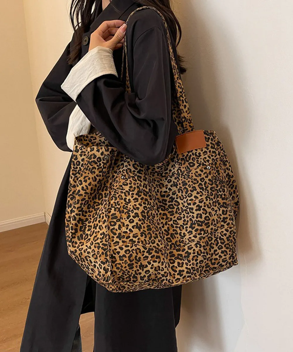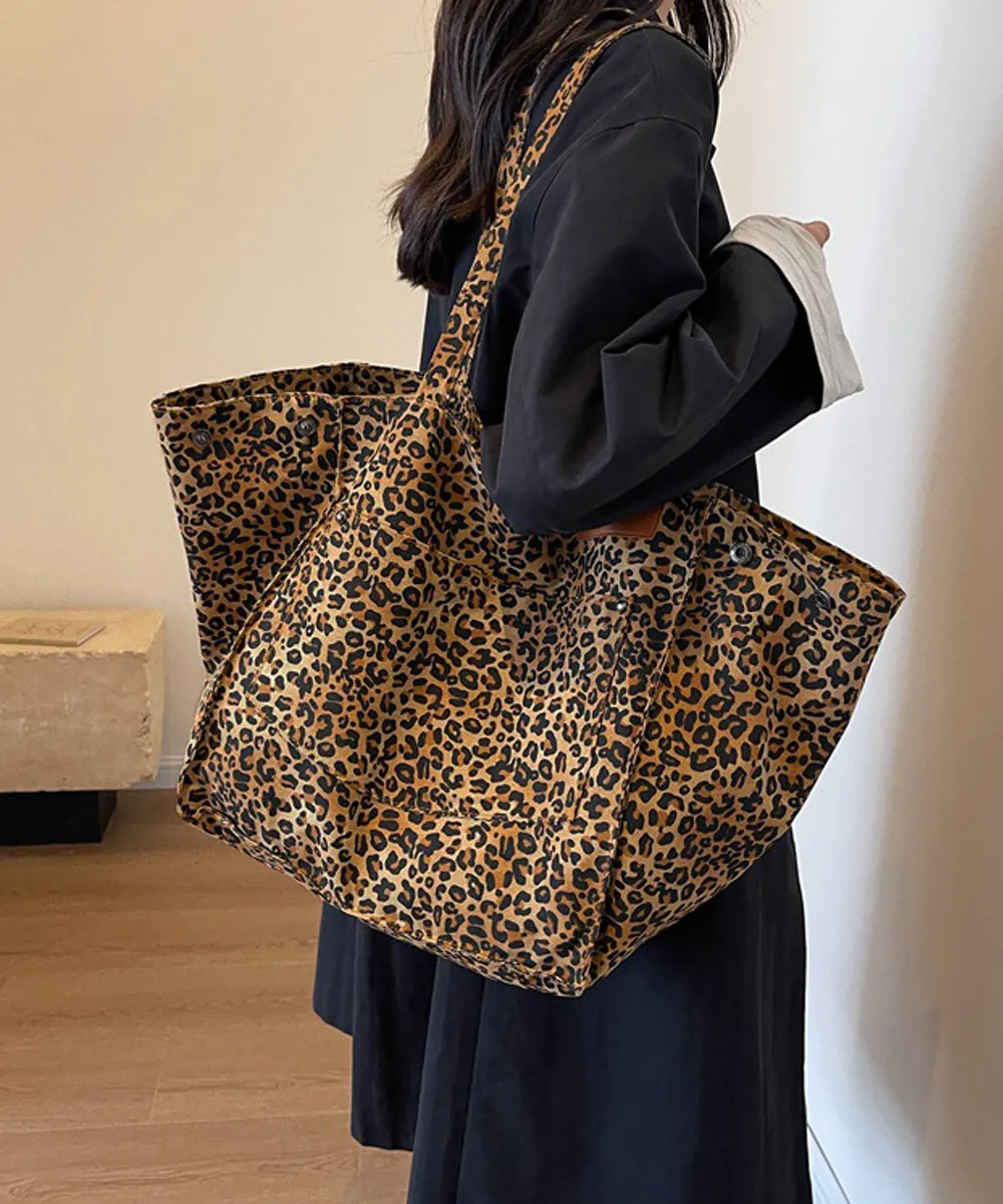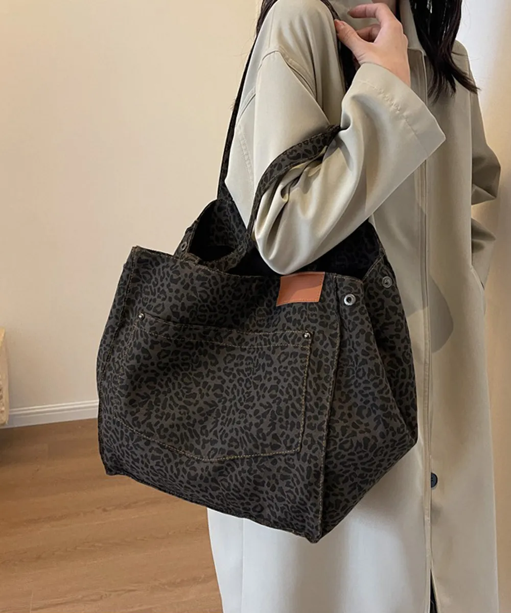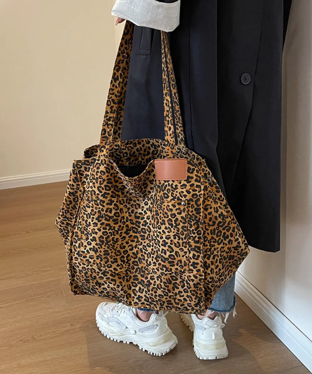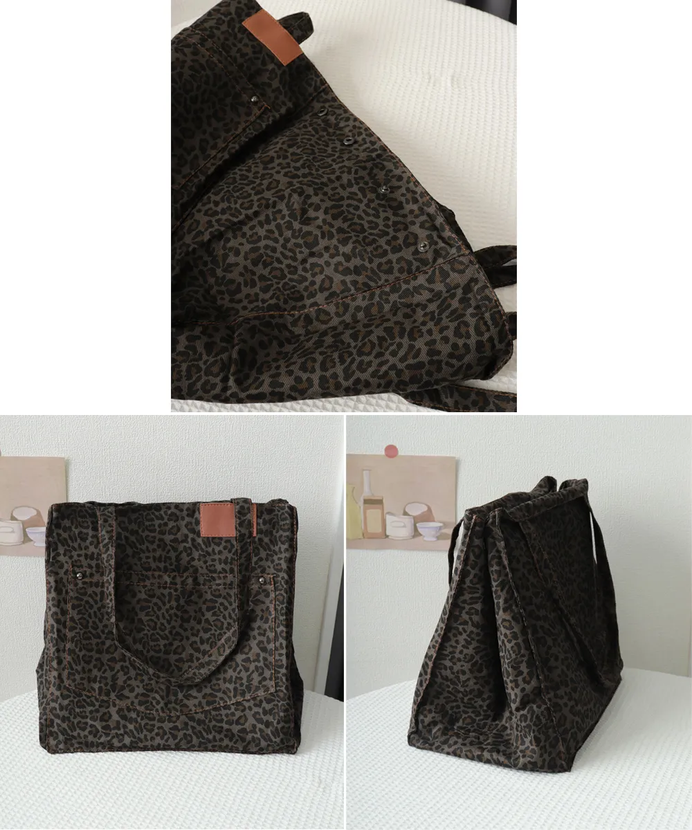ヒョウ柄大容量トートバッグ A4対応&ipadminiも入る軽い素材 韓国風デザイン