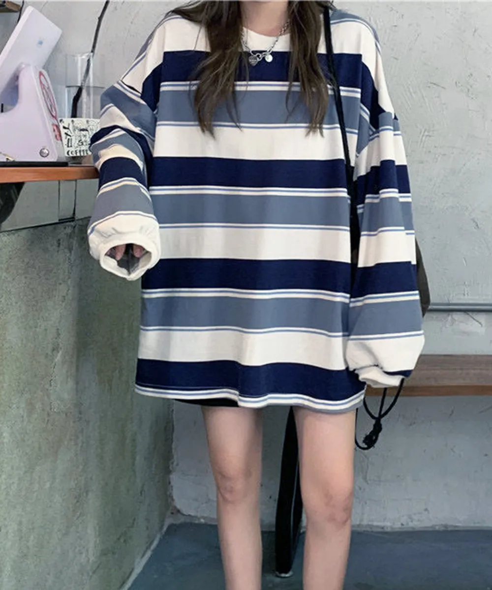 大人っぽいボーダーデザインとボリューム感のあるトレーナー