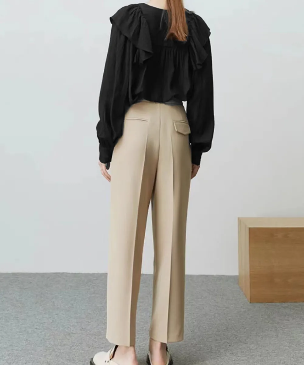 大人可愛いラッフルブラウス韓国風レディース長袖 ボリューム袖/フォーマル/オフィスカジュアル/入園式服装